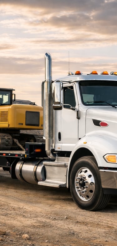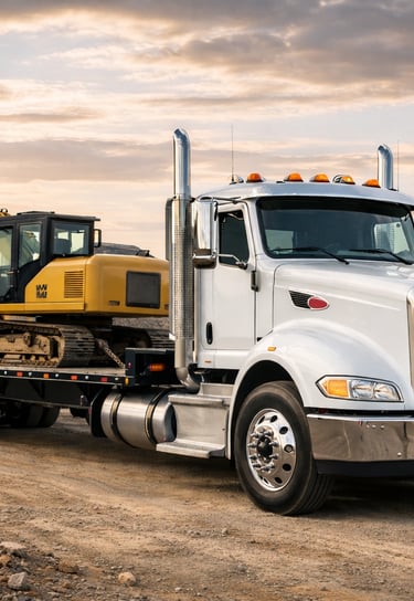 Safe, on-time transport of heavy machinery like loaders, pavers, and excavators to and from your job site.